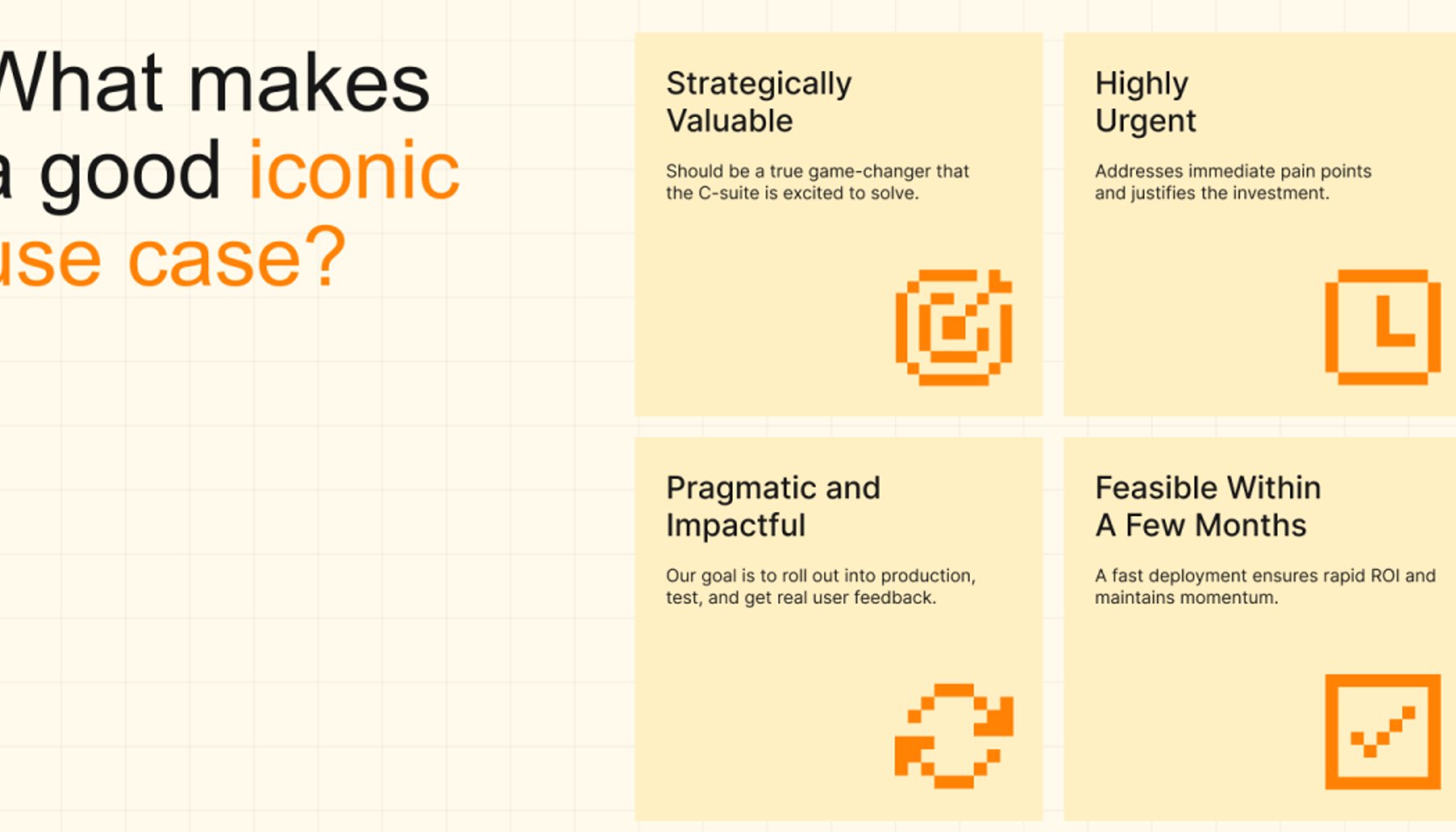 As companies prepare to roll out AI solutions in the coming quarters, focusing on an iconic use case could not only mitigate risks associated with AI adoption but also maximize the impact of these investments. The key takeaway is clear: organizations must prioritize strategic alignment and tangible outcomes over mere experimentation.